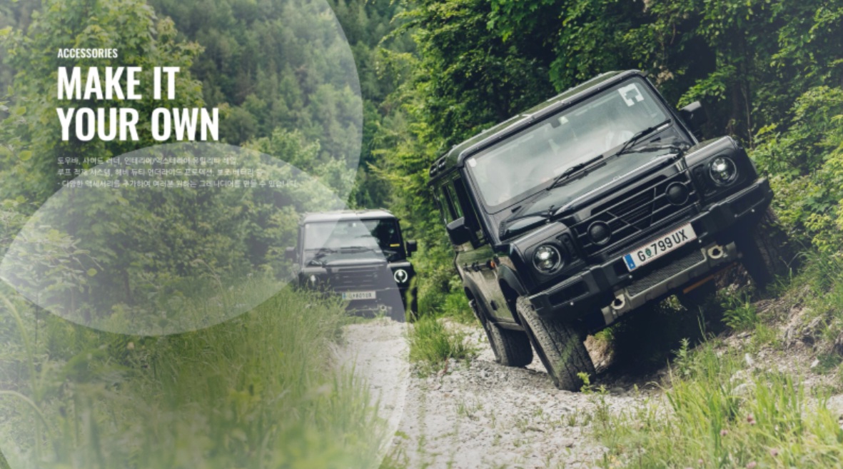 먼저 회원가입이 먼저인 거 아시죠? 회원가입이 끝나고 이네오스 그레나디어의 색상과 옵션을 선택 후에 액세서리 등을 확정 지으시면 됩니다.